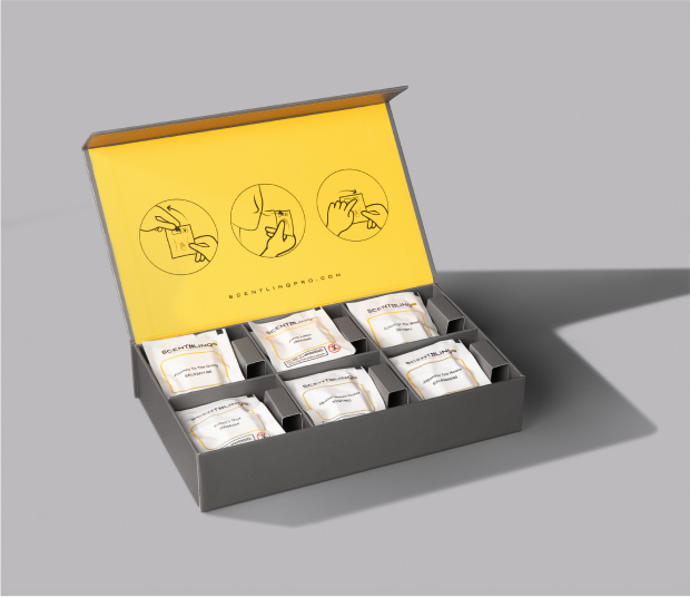SCENTLINQ koku koleksiyonu deneme setini, özel tasarlanmış paketlerde kolayca deneyin.